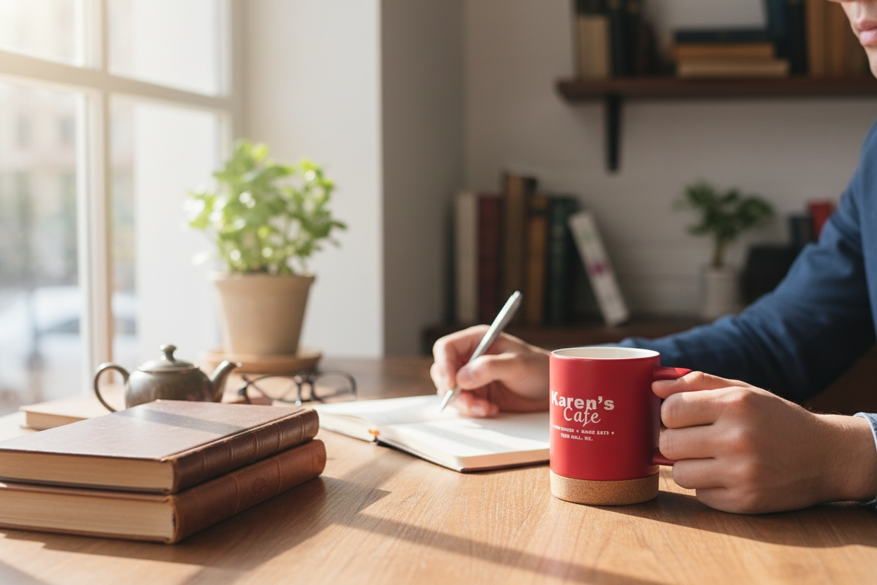 ⭐ Karen’s Café Mug – One Tree Hill Inspired Coffee Cup | Tree Hill NC | Cozy Red Ceramic Mug with Cork Base